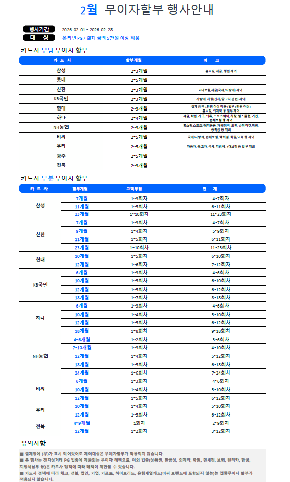 2월 무이자 할부 행사